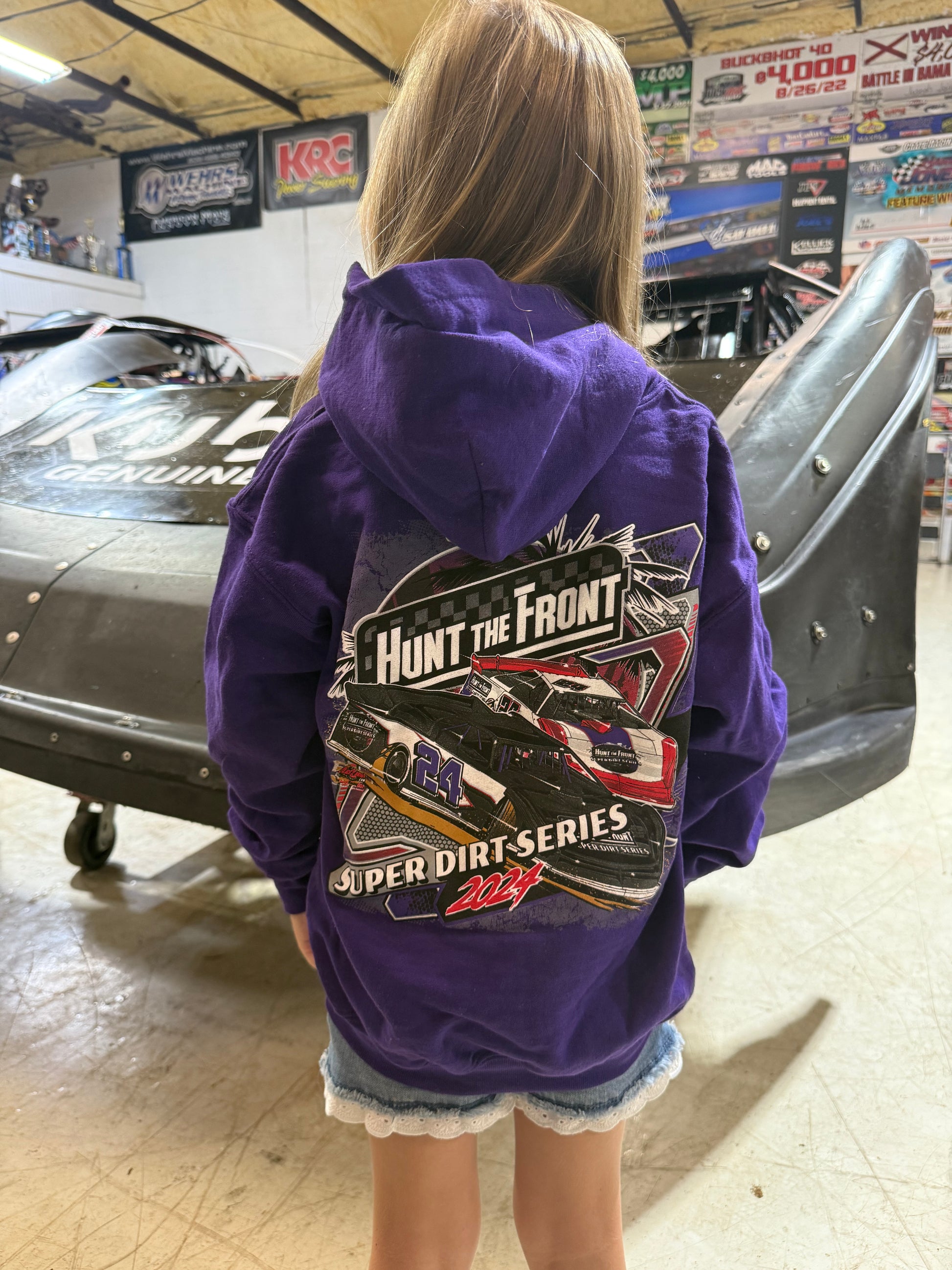 The Official HTF Super Dirt Series Hoodies are now available in Youth Extra Small - Youth Medium in NAVY and PURPLE.