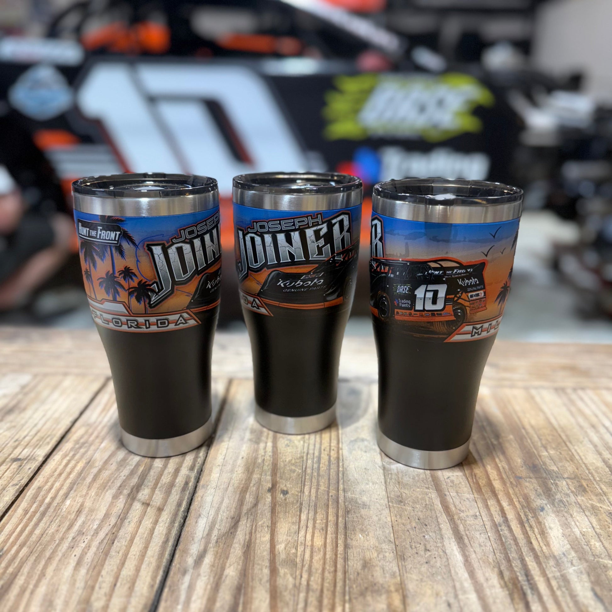 30oz. Vacuum-insulated tumblers featuring Joseph's 2025 Wrap are now available! These tumblers are made of double wall stainless steel and designed to keep drinks hot or cold for hours. Each tumbler comes complete with an acrylic push-on lid with a thumb-slide closure.