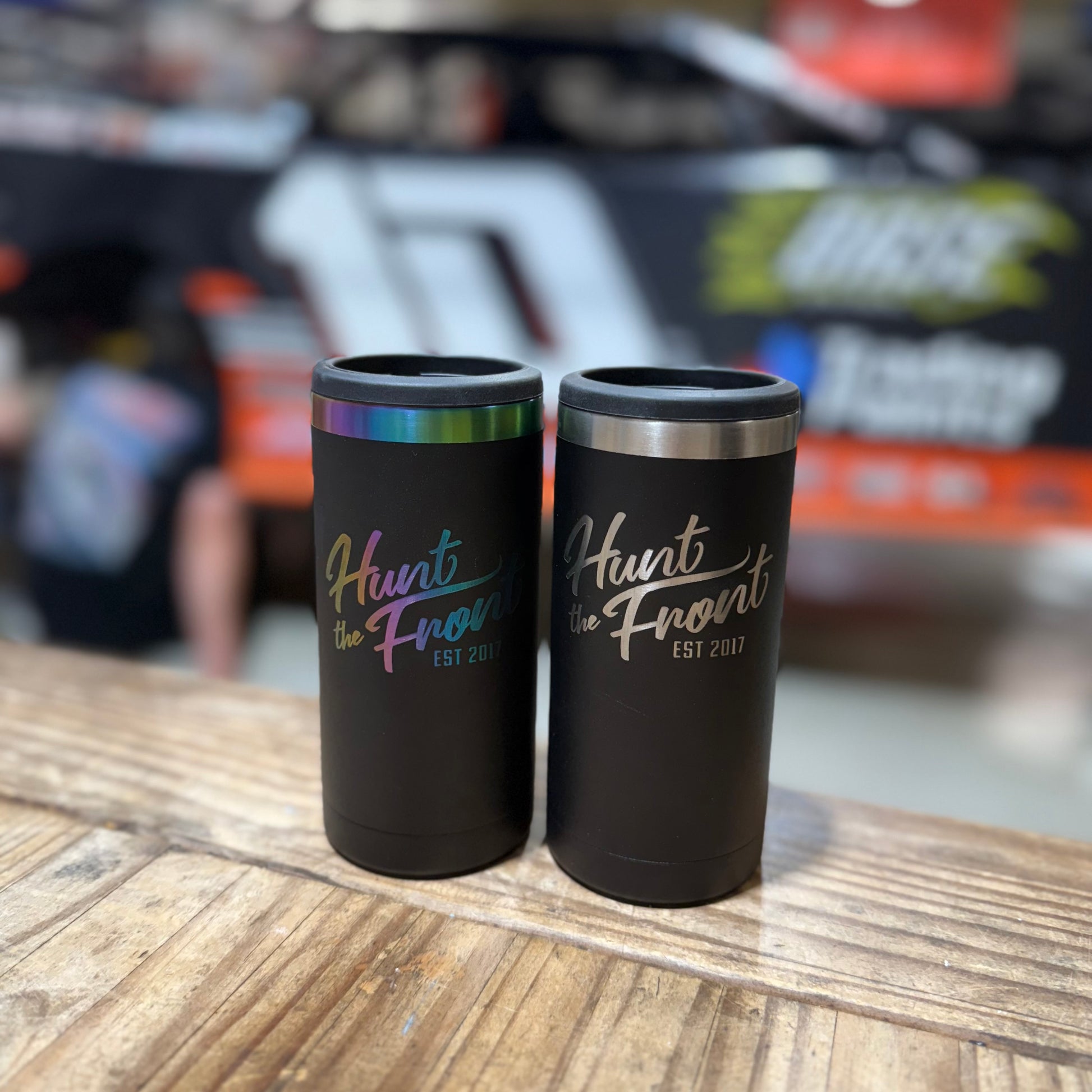 Hunt The Front Script Logo 12oz Slimcan Koozie